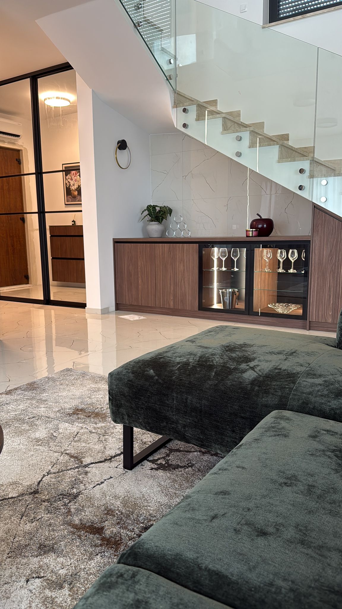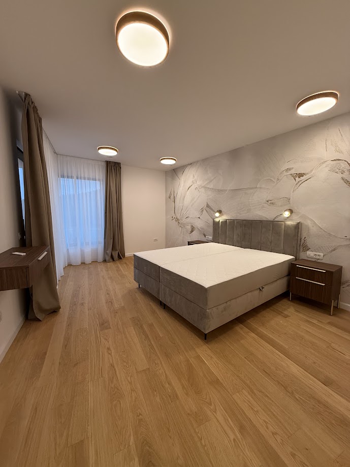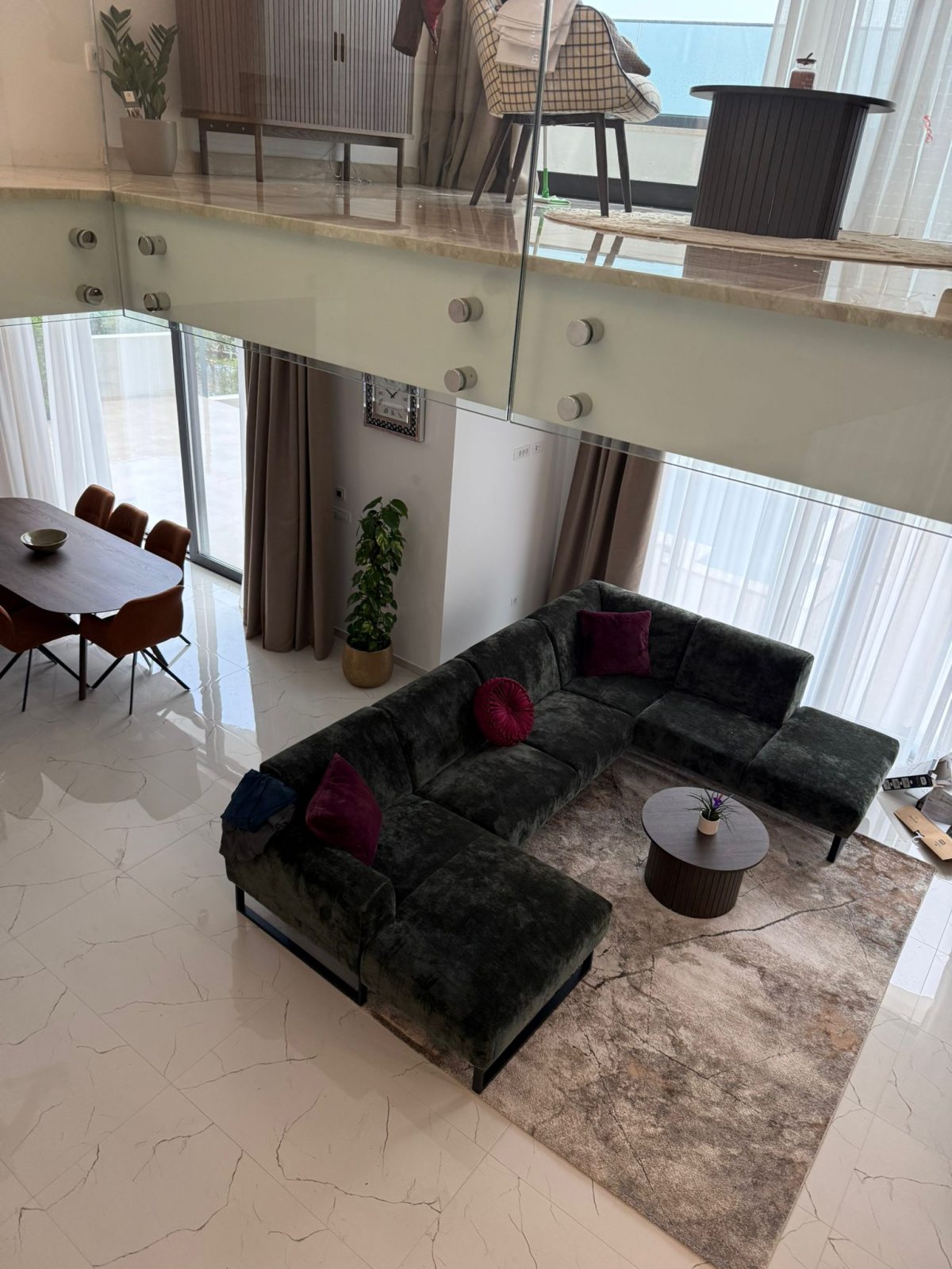 Special feature of interior design is Gallery with flying stainless steel stairs all the way to the second floor with big glass sliding doors on each floor of gallery. First floor offers two En suite bedrooms with long terrace, gallery which can be used as gym or library with big glass door. On second floor is located master bedroom with big terrace and jacuzzi on top to enjoy in marvelous views. Each floor has max height of 3m to enhance luxury of this unique Villa.
